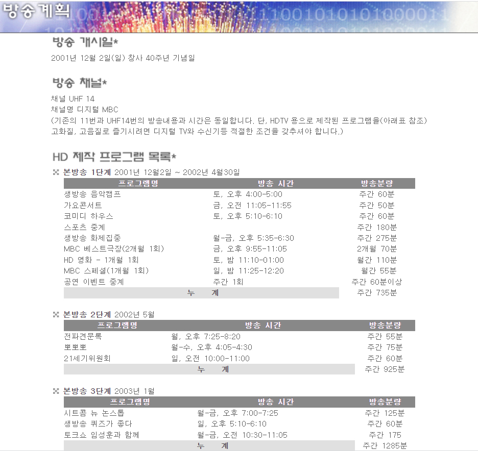 디지털 MBC 방송계획