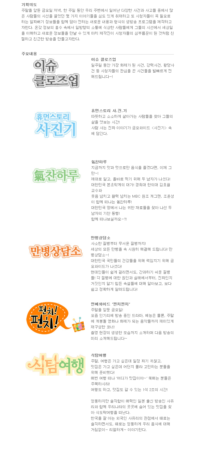 생방송 금요와이드 프로그램 소개